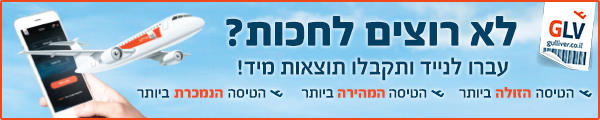 כל הזכויות שמורות לגוליבר ישיר בע"מ, המציעה חבילות נופש, טיסות, במלונות בעולם ובישראל. אין להשתמש בתכנים ללא אישור מראש בכתב מגוליבר.